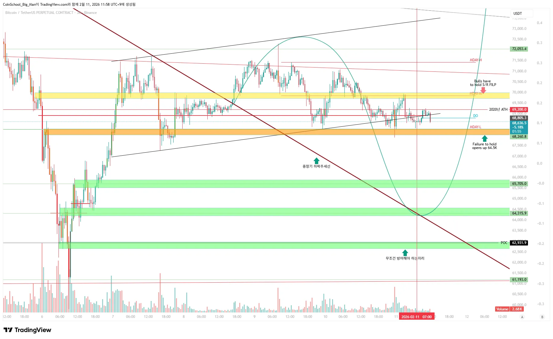 결국, 올라갈지 내려갈지 기다리는것보다 67.2K VS 72K 둘중 어디가 먼저 깨지는지 봐야하는 시점입니다
