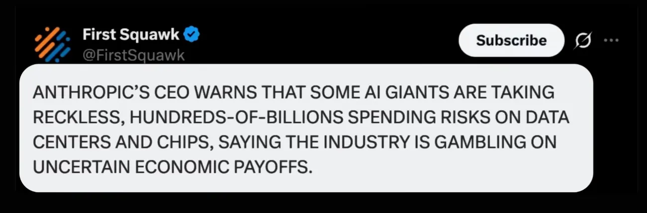 위글은 AI 기업들이 데이터센터랑 칩에 수백조씩 쓰면서 너무 위험한 도박을 하고 있다