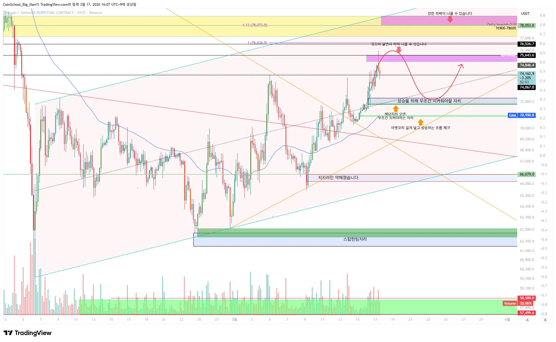 현재 74K는 이번 상승의 중요한 단기 지지라인이 됩니다.