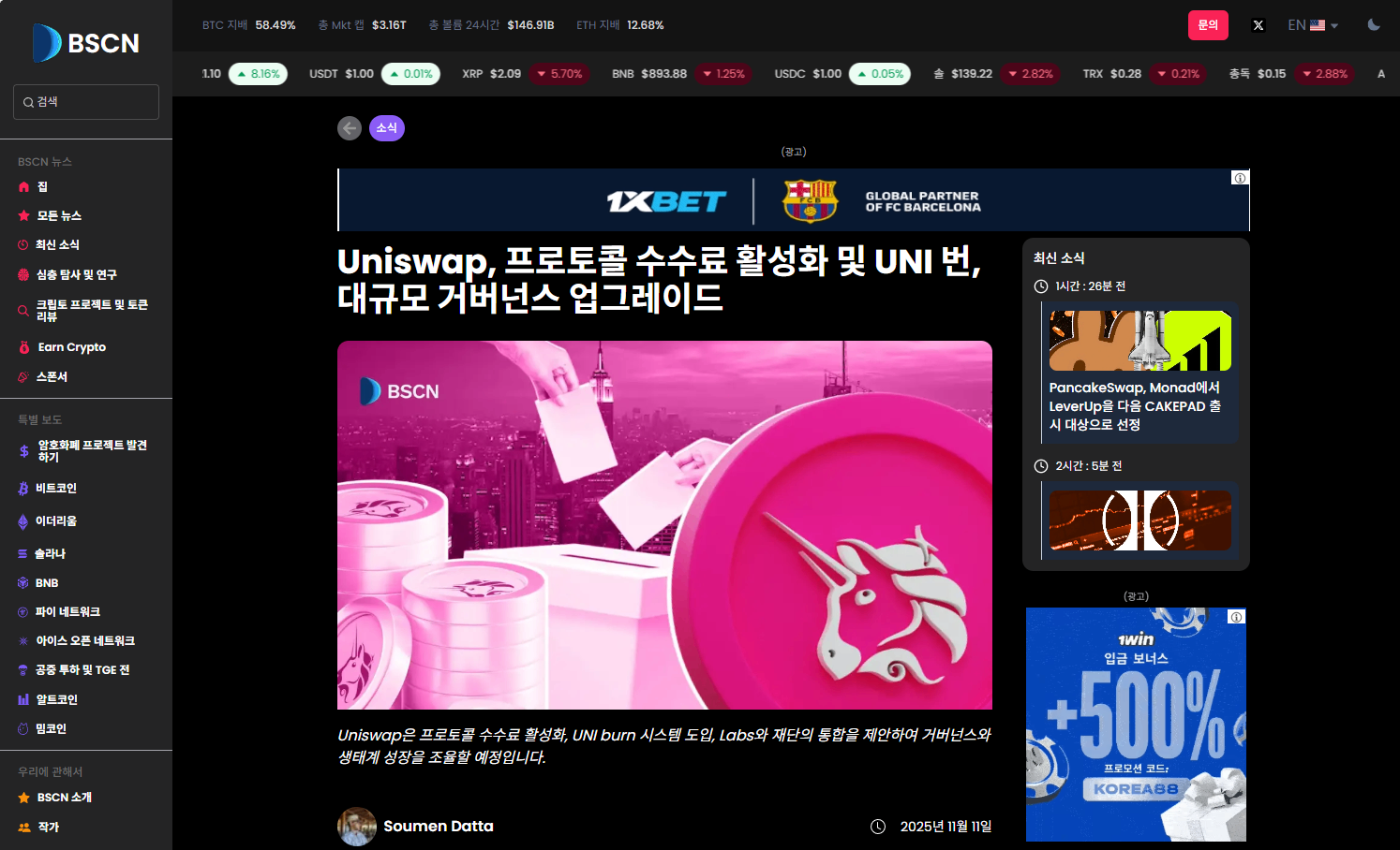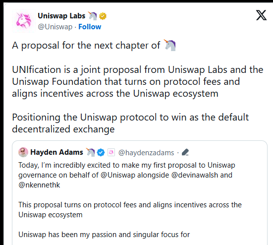 요 며칠 UNI가 조용히 안 가고 있지 그냥 잡코인 펌핑이 아니라 토크노믹스 구조 자체가 바뀌는 이슈라서 한 번 정리해봄
