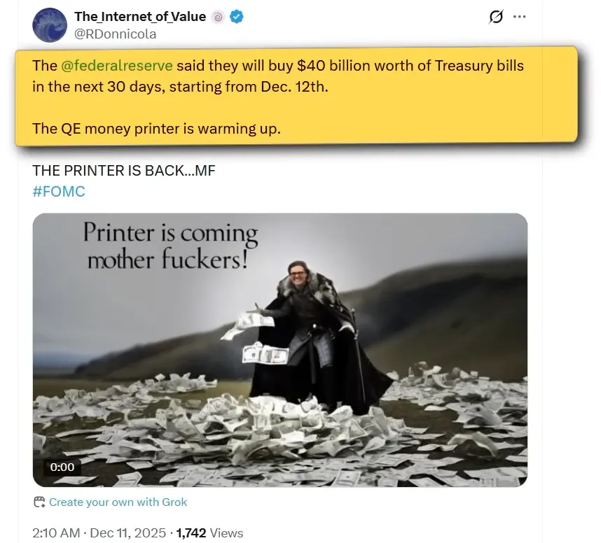 이번 사이클은 매달 400억 달러 T-bill 매수