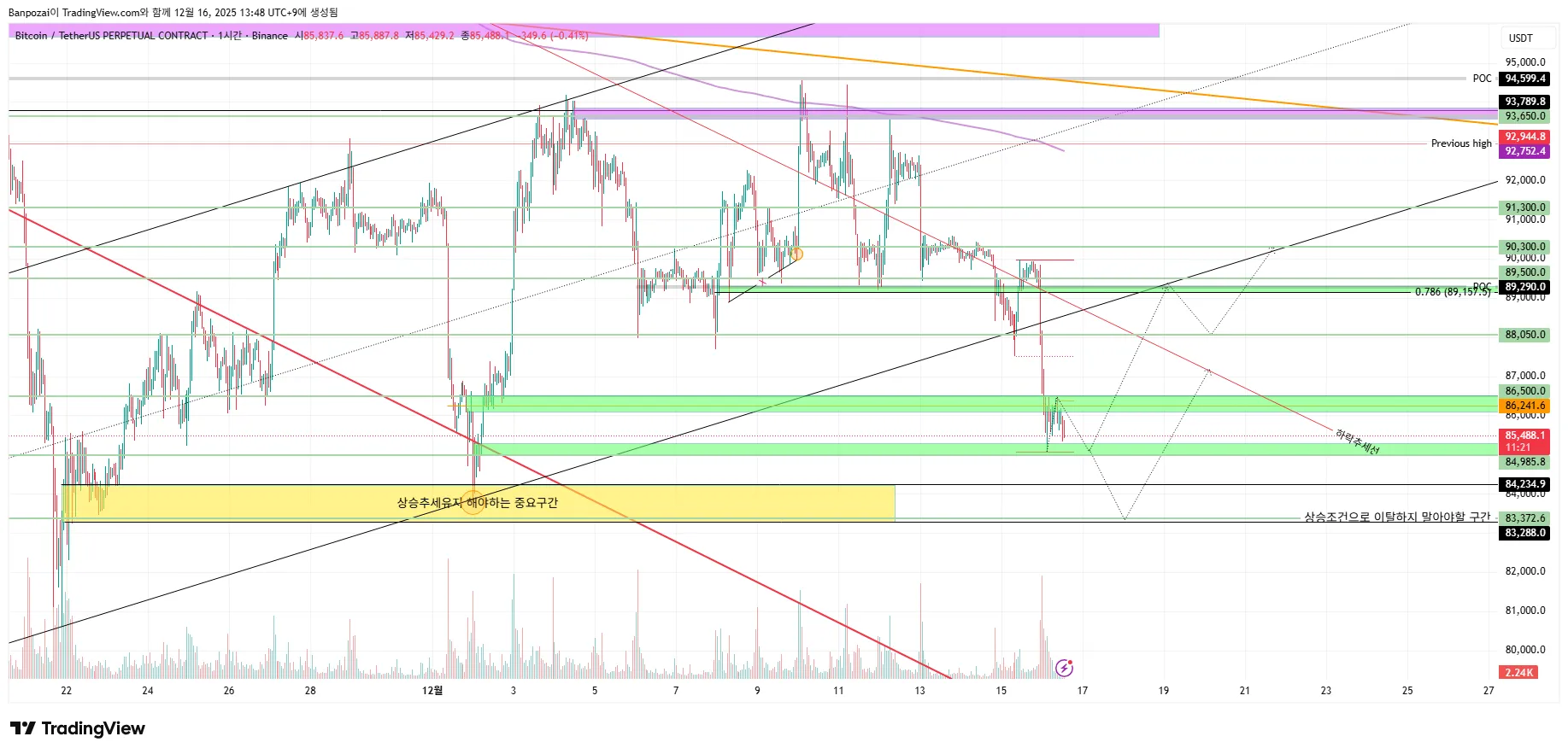 89.8K를 돌파 못하고 결국엔 눌림이 나와야했습니다 리스크 관리를 했다면 하락을 피할 수 있었을 겁니다.
