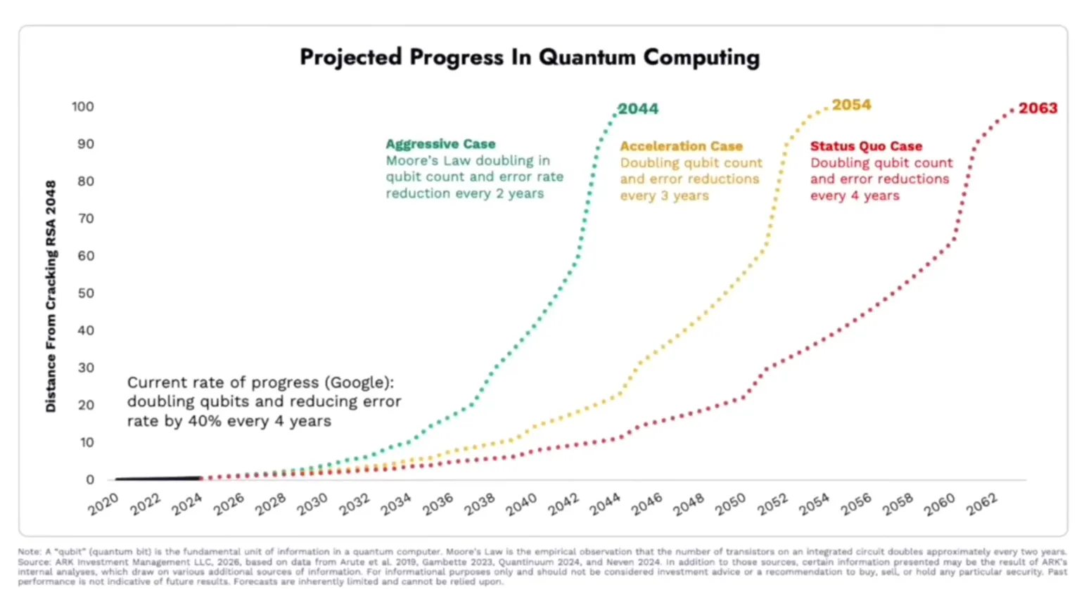 ✅ 가정 속도가 무어의 법칙 수준으로 빨라지면 중반 40년대에 위협 가능