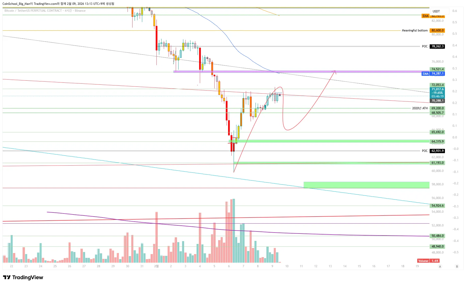 61.2K를 방어해주면서 72K 까지 반등이 나왔습니다.