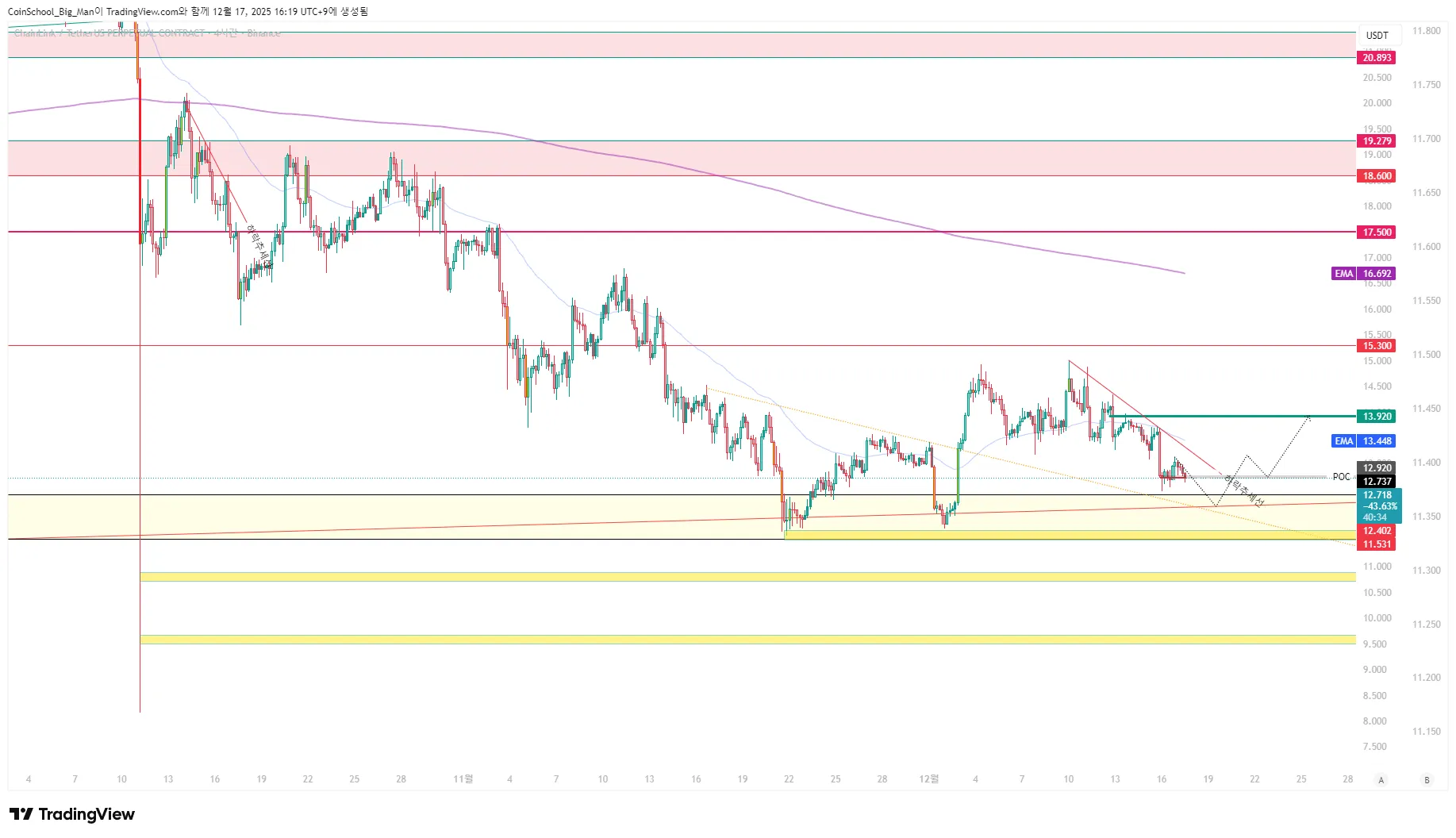 횡보세가 2-3일정도 이어질 것으로 보입니다 13.9 > 14.5 > 15.3 이런순으로 보면됩니다